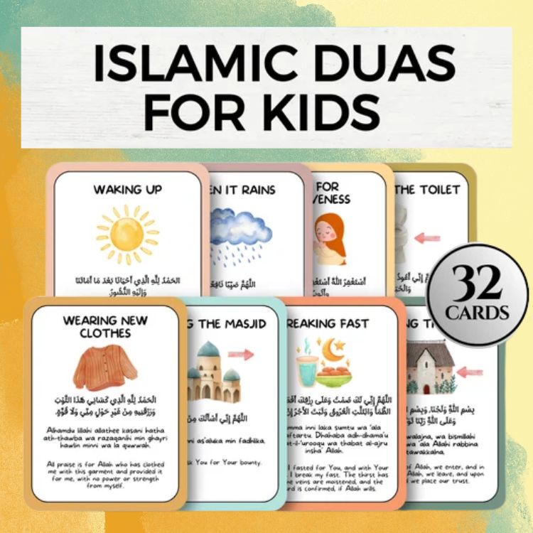 Ideal for parents, teachers, homeschoolers, and Islamic schools, these dua cards help children build strong daily Islamic habits in a joyful and interactive way.